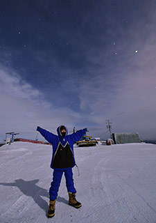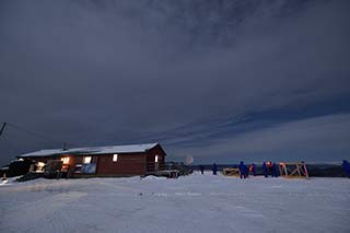 もっと晴れてくれ〜。オーロラが無くても晴れてさえいれば、いろいろと撮影できるのですが、、、、、、 月明かりで影もくっきりと出ています。 気温はマイナス25℃程度。