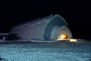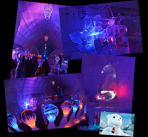 カニです!このボリュームに喜んで食べていたら、添乗員さんが2本分けてくれました。ありがとう! ところで、ここではちょっと変わった道具で殻を割ります。 ![]() ちょっとコツが必要ですが、缶切りの要領というかてこの原理を使ってバリバリ割っていきます。プラスチック製なのに良く折れないなぁ、と変なところに感心してしまいました。 お味の方は言うまでもありません。皆さん黙々と。 ![]() ごちそうさまでした。 レストランを出て部屋に戻るときのワンカット。雪があるとイルミネーションが映えます。 こういう光景を見ると、ついシャッターを押してしまいます。 ![]() 食事の後、オーロラ撮影までに時間があるので、その時間を使って、楽しみしていたICE MUSEUMの見学です。 ここの見学は有料($15)なのですが、決められた時間にしか入ることができません。今回は、他のお客さんもいなかったので、我々のツアーメンバーだけの時間設定をして頂けました。 この建物がICE MUSEUMです。外の扉を開けると一旦小部屋があり中扉をさらに開けて入ります。テーマパークのアトラクションの入り口みたいです。でも、ここでは特に夏期に内部の温度を保つためだそうです。 ![]() 中に入ると氷の彫刻の世界です。 色とりどりの照明が入っているので幻想的な空間です。 コカコーラのCMでもやっていたスノーベアの大きな彫刻もありました(右下)。 ![]() 小一時間くらいでしょうか、氷の世界を堪能し、外に出ました。 相変わらず、もう見飽きたにっくき月の暈が見えていました。 今日は晴れる予報が出ているそうですが、どうなんでしょうかねぇ。 泣いても笑っても、もう最終夜です。どうなることか、運を天に任せるしかありません。晴れますように〜。 今回の旅行はオーロラを見に来たんです。このままでは、日本に帰れないです! オーロラを見に行くのは1時間後の21:15。 |