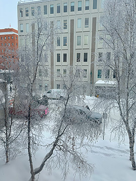 窓の外の目の前の木にはスズメが何羽かチュンチュンと賑やかに。こんな寒い地でも元気に暮らしているんですね。凄い。