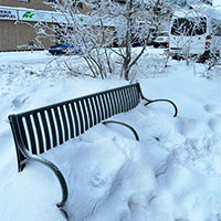 前夜に降り積もった雪のせいで、歩道脇のベンチも御覧の通り。誰かが座ったお尻の跡がかわいい(^^; 昼にはちょっと早めの11:20に店に入ったお陰でまだ店内は空いていて、好きな場所に座れました。