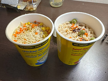 当初の出発前に食べようと用意していた現地調達のカップ麺で朝食としました。チキン味とビーフ味。ぼそぼそした麺で、スープの味もいまいち。やっぱり、日本のカップ麺技術は素晴らしい! とはいえ、流し込みました。