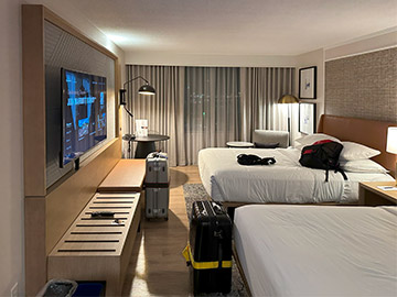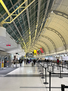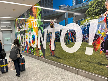 空港に着いたものの「TORONTO」の文字が見当たらず、本当にここはトロントなんだろうか??しばらく歩いて行ってようやく「WELCOME TO TORONTO!」の文字を見つけて、初めて実感。 到着したのはTerminal-1。今夜の宿泊はTerminal-3に併設されているシェラトンホテルです。ターミナル間移動列車に乗って移動します。 イエローナイフで並み?のホテルに滞在していたので、高級そうな感じがして期待が膨らみます。