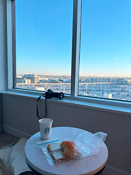 朝食は残り物の処分です。 イエローナイフの2日目に買ったレモン風味のケーキがやパンが残っていたのを捨てるのは勿体ないと、ジップロックに入れて取っておいたものや、日本から持ってきていて食べることのなかったカップ麺(ここには写っていません)などで済ませました。 見事にきれいさっぱり消費することができました。 ゆっくり準備して、ロビーに集合です。