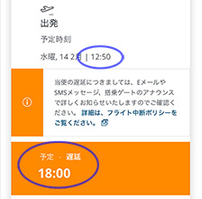 ロビーに集まり、添乗員さんからこの後の流れについて説明を受けている最中に、隣にいた娘がポツンと一言「飛行機、遅れてる、、、」。えっ?また?見せてくれたスマホの画面には12:50発が18:00発になるという5時間以上の大遅延のお知らせが!