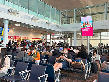 遅延による想定外の空港内滞在でしたが、最後のお土産を購入などして、ようやく出発の時間が近づいてきました(17時ちょっと前)。搭乗口近くに移動。「AC001 TOKYO-HND」の文字が見えます。やっと帰れそうです。 (この写真を撮ったのは搭乗するときだったので17:41になっています) ![]() 搭乗口近くは結構混雑。隣り合わせのゲートの搭乗時刻がほぼ一緒になってしまっていたからです。 そろそろ搭乗開始かと思っていたら、アナウンス。またまた30分ほど遅れるとのこと。 もう、そのくらいなら誤差範囲ですね。5時間40分遅延ってことね。はい、わかりました。