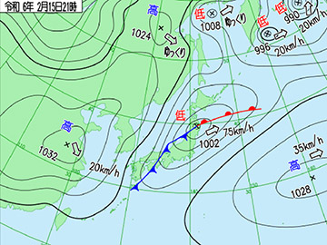 実はこの日(2/15)の昼間、発達した低気圧が通過して東京で春一番が吹いていたそうです。2/15の21時の天気図はこんな感じで、まさにこの低気圧の中を飛行していたことになった訳です。これは滅多にない悪条件だったってことですね。天気図を見て納得してしまいました。