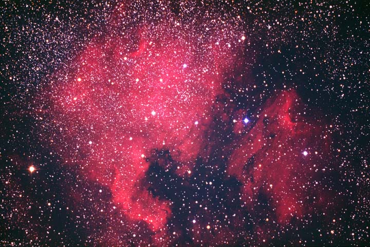 北アメリカ星雲(NGC7000) 1998年9月19日 19時44分から40分露出 タカハシ イプシロン160 二コンNEWFM2 タカハシEM200+ST-4 エクタクロームE100S(4倍増感) 撮影地/乗鞍鶴ヶ池駐車場